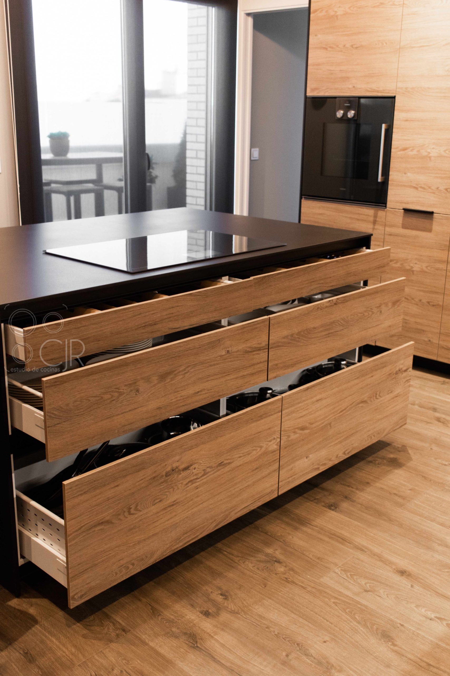 Cocina Negra y madera con isla moderna cocinas CJR santos