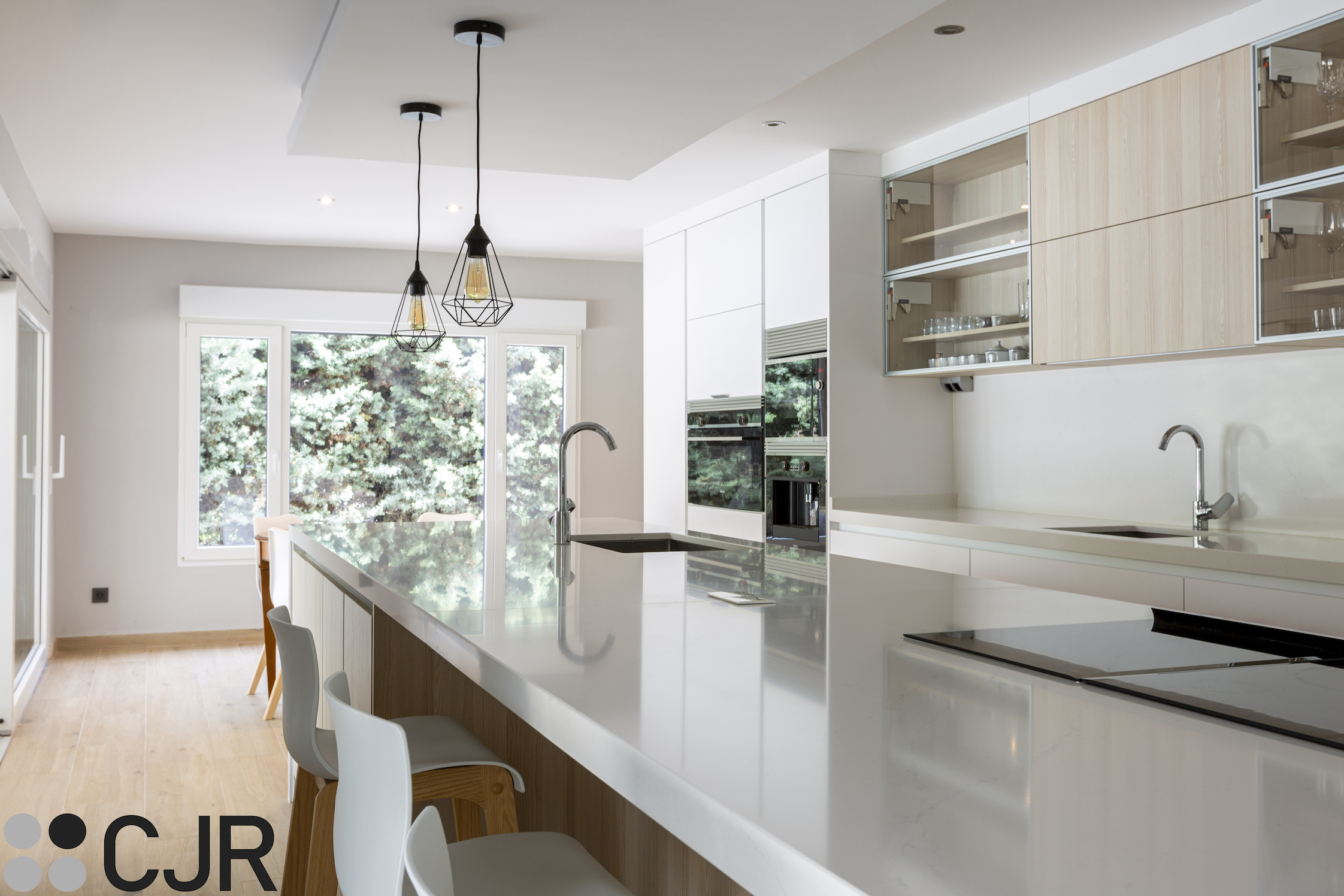 Cocinas TENDENCIA – Cocina nórdica blanca y madera con ISLA GRANDE CJR
