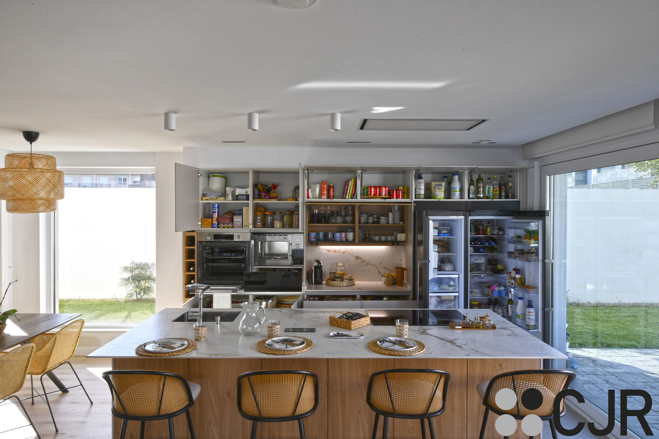 Y en este proyecto además no solo es una cocina abierta al salón, sino que abierta a toda la vivienda para conseguir la máxima amplitud y visibilidad.